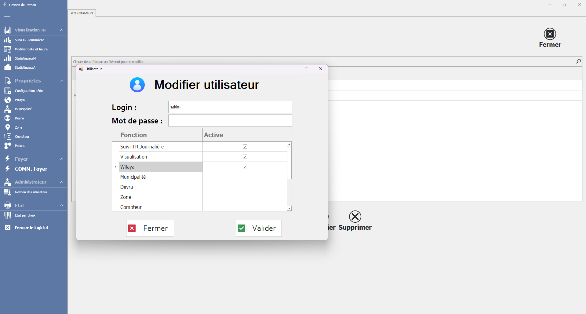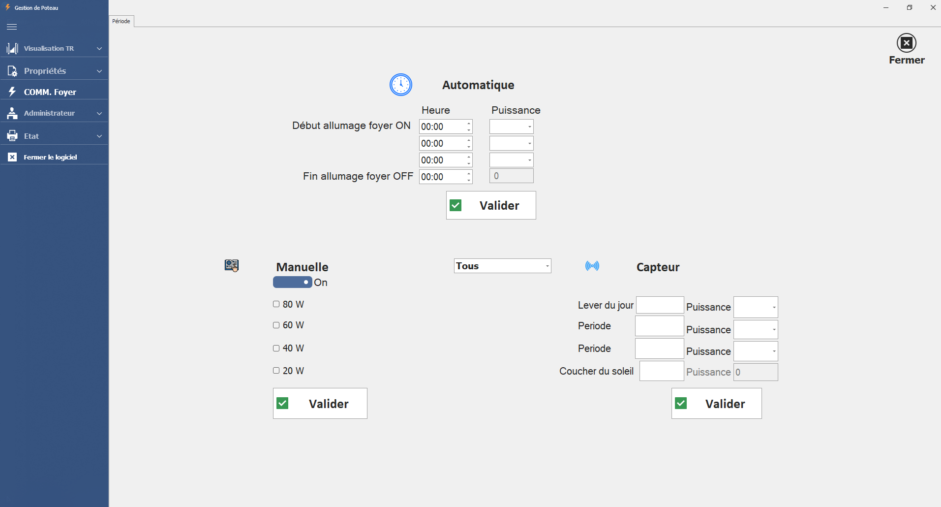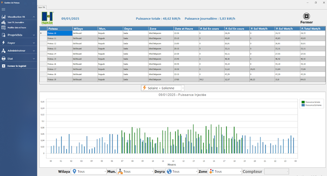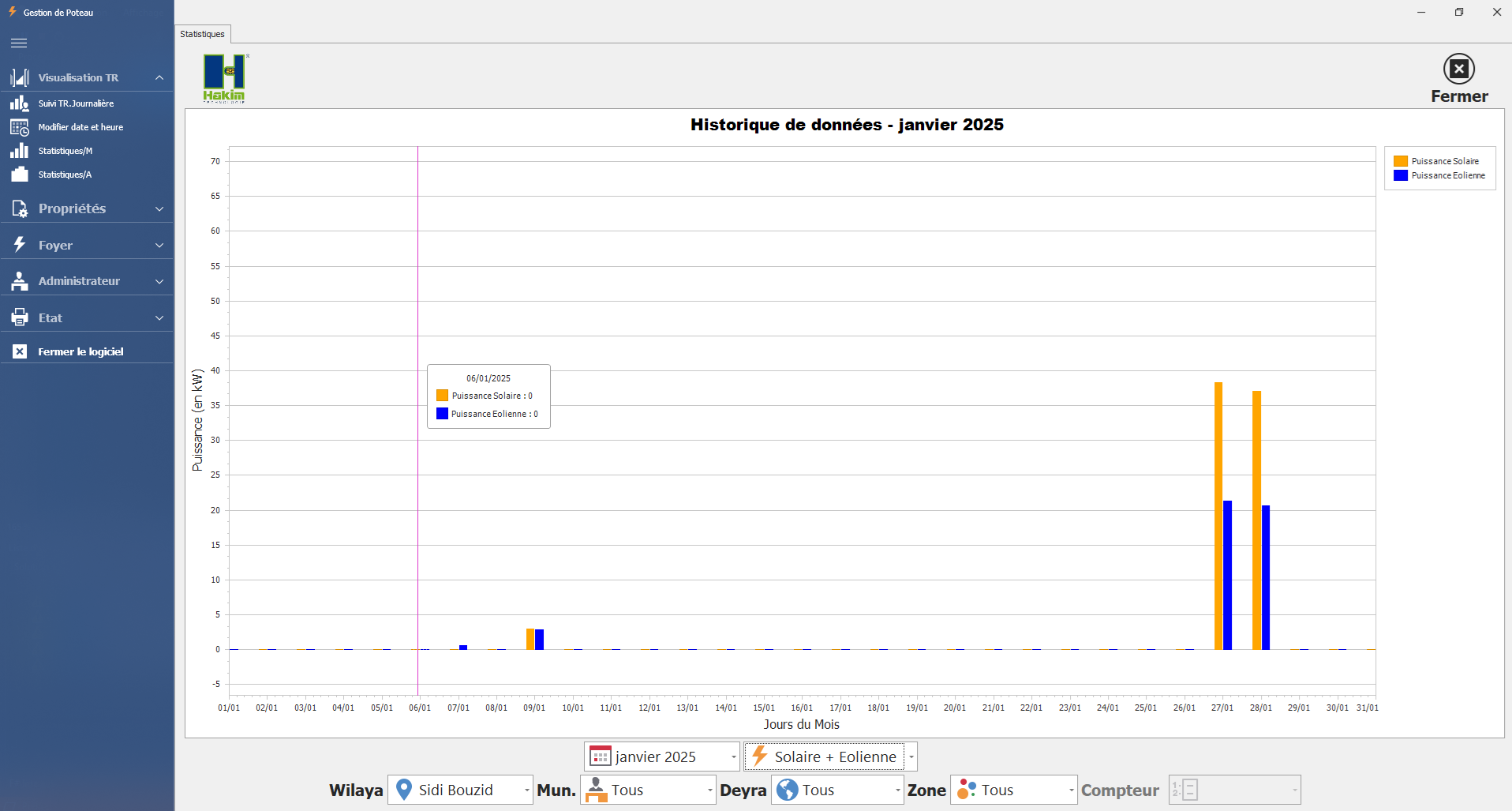 Un logiciel sous Windows installé au serveur de la municipalité permet la gestion et le contrôle à distance des foyers via une connexion réseau. Il offre également l'édition de différents états comme la consommation produite et consommée.
